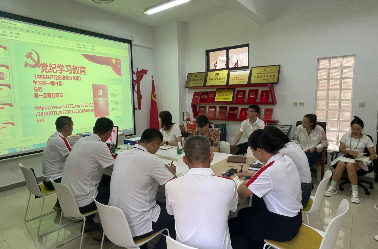 2024年5月8日下午15:00,suncitygroup太阳集团教工各党支部在会议室组织召开主题党日专题学习会,集中学习《中国共产党纪律处分条例》第一编总则第一至第五章。公司纪委钟慧聪,陈国艳同志出席教工第三党支部会议,公司领导班子成员、党委委员杨腾、孟东明、隋国增、王博文参加各党支部主题党日专题学习会议,教工各党支部党员列席会议。会议由公司各党支部书记主持。