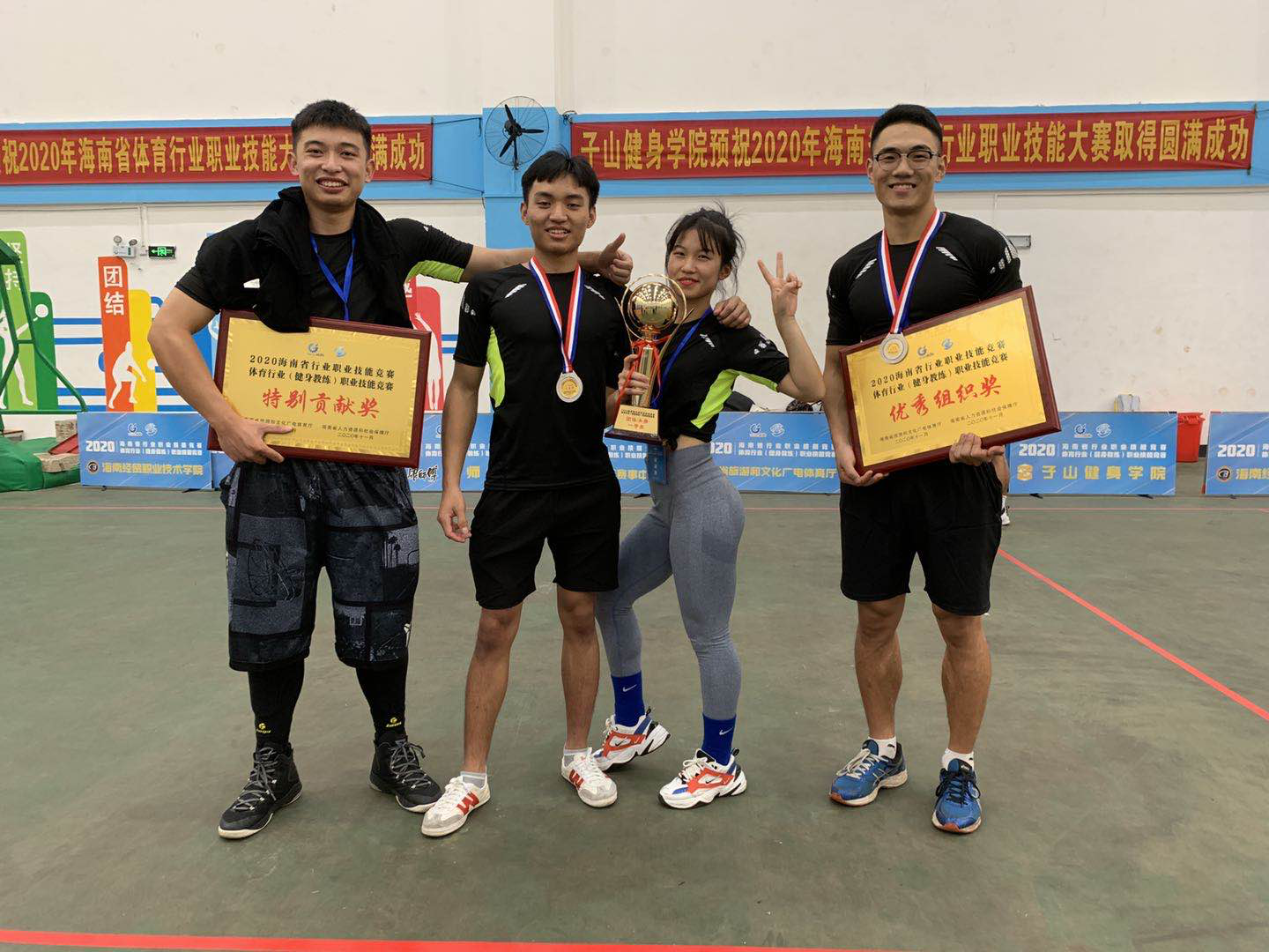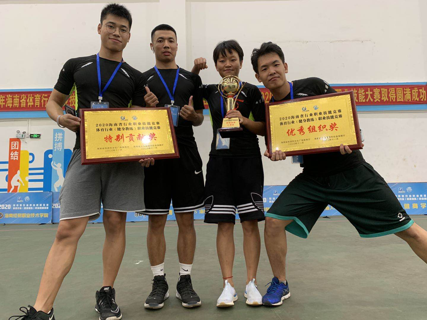 来自全省各高校、健身俱乐部的200余名社会体育指导员历时3天的激烈角逐,suncitygroup太阳集团健身队在谢春雨、师伟超两位老师的带领下,队员们拼搏进取,在众多队伍中力压群雄,脱颖而出,一举拿下团体赛第1名,个人赛第2名、第3名的优异成绩成绩,并取得了优秀组织奖和最佳贡献奖,成为了此次比赛的最大赢家。